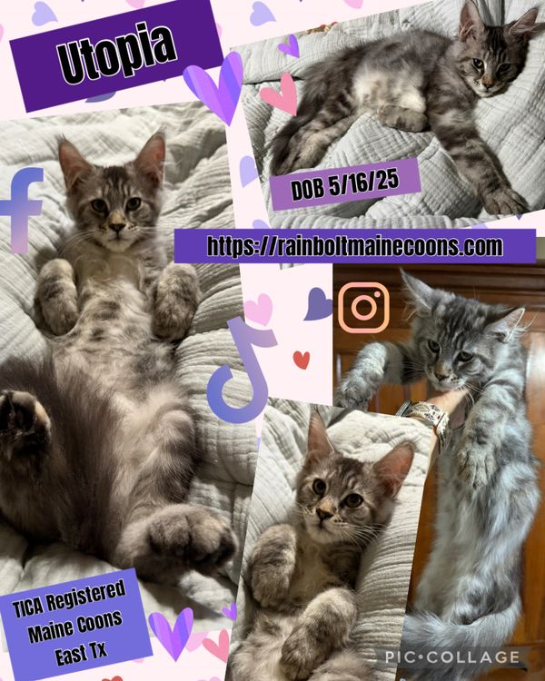 Facebook group: Maine Coon Pictures From Rainbolt Cattery Kitten Families In East Texas